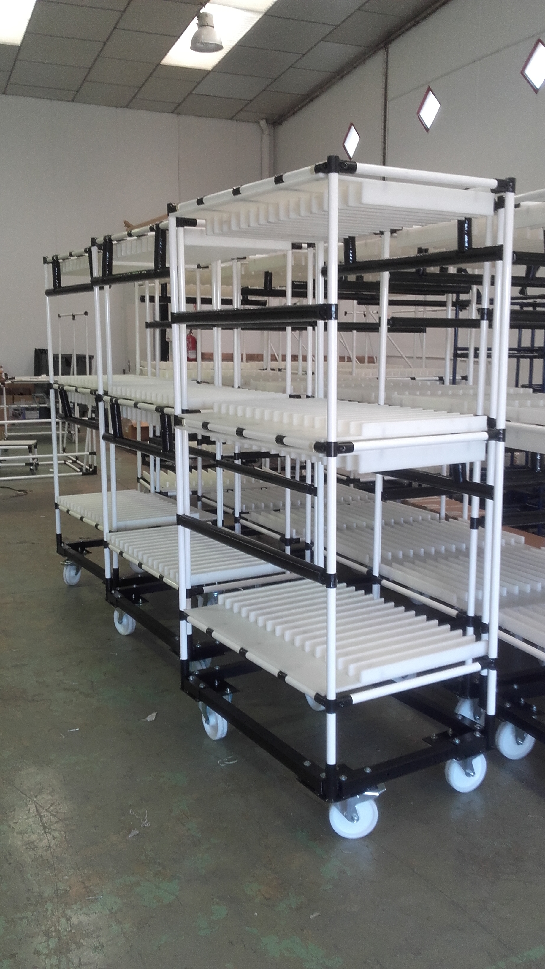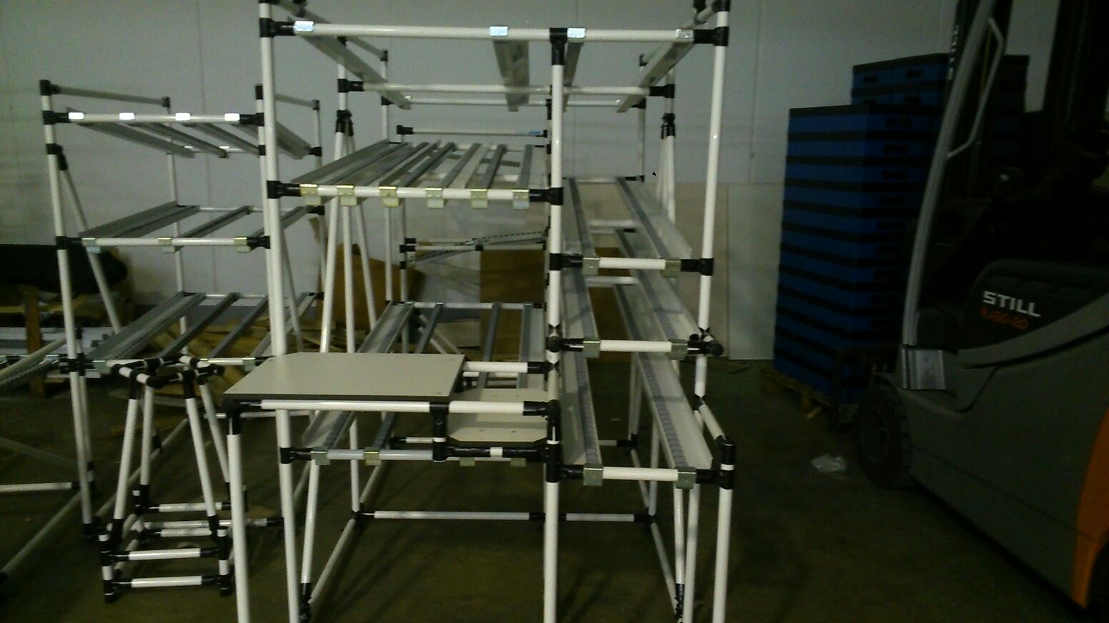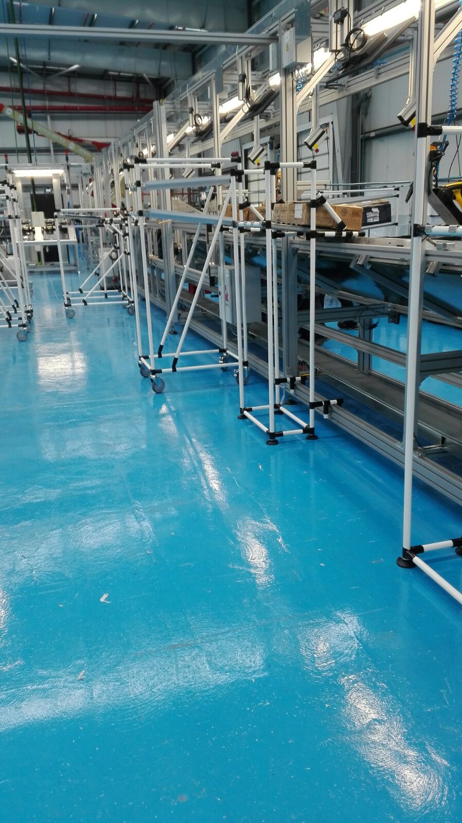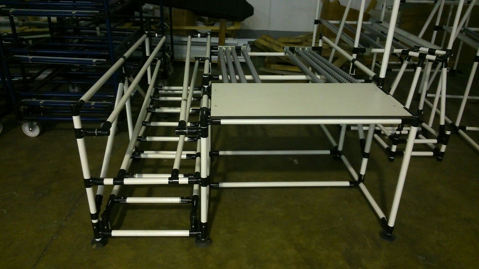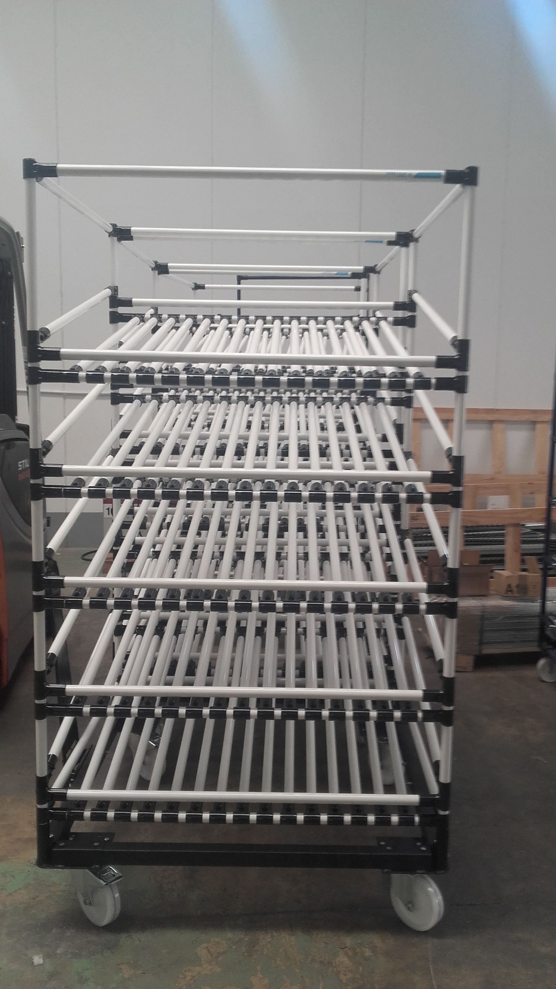 Sistema flexible compuesto por tubo de acero de diámetro 28.2 mm y espesores de 1mm y 2 mm. y juntas rollers y accesorios E-Lean, siguiendo las pautas y directrices del sistema de producción Lean Manufacturing.